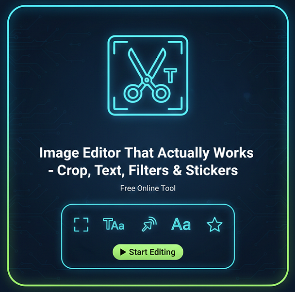 Image Editor That Actually Works 100% All features working: Crop + Text + Filters + Sharpen + Stickers + Export